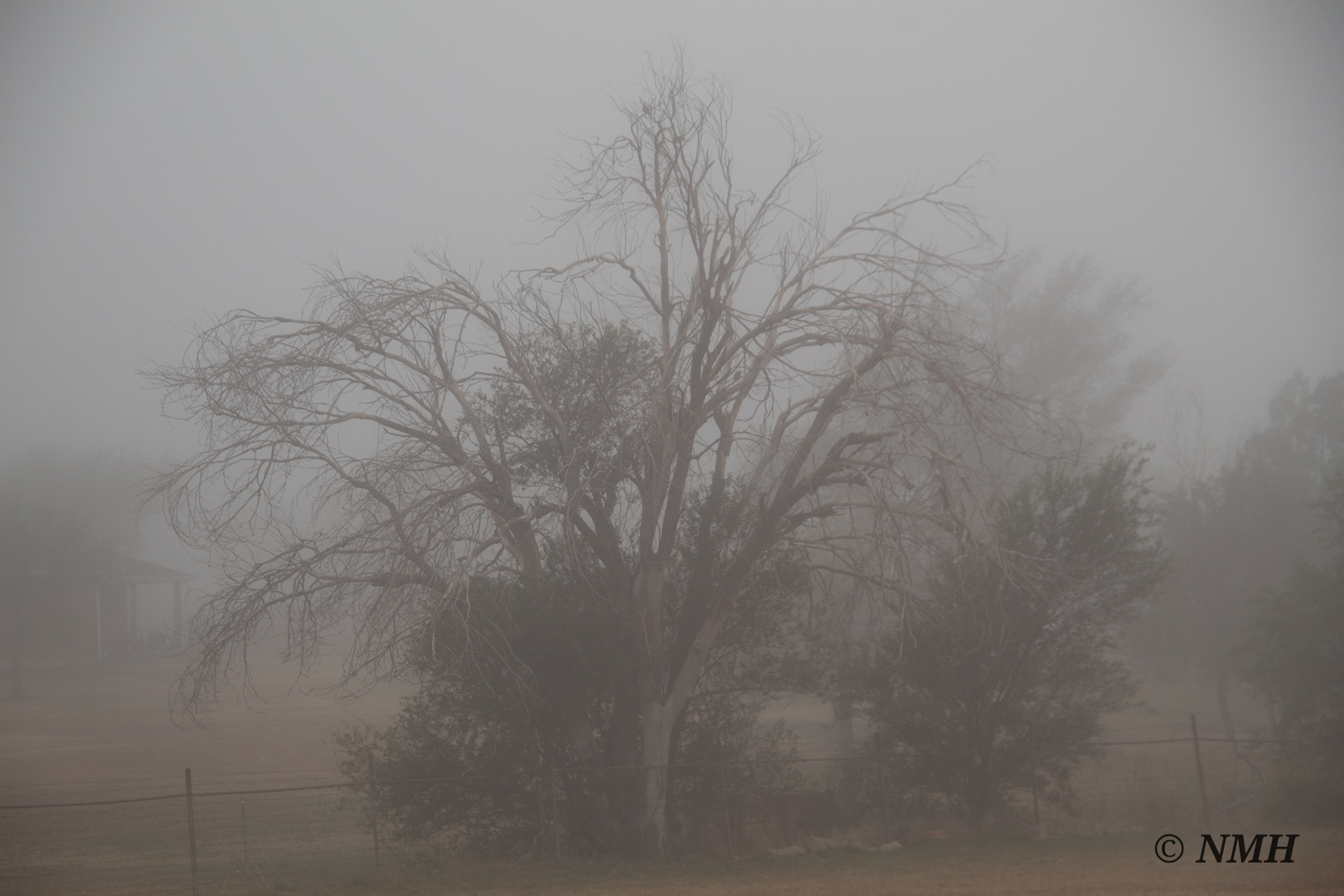 Living in the middle of the Texas Panhandle where dry arid conditions prevail, it is a rare treat to wake up to a foggy morning such as this. Being a native Kansan, I took mornings like this for granted most of my life. But after living here for almost 10 years, when I wake up to a morning like this, I am almost giddy with excitement! Taking the moist air into my lungs, and feeling the damp on my face is heavenly! The foggy haze shrouds everything in mystery and softens the edges, sometimes hiding familiar landmarks completely from view.